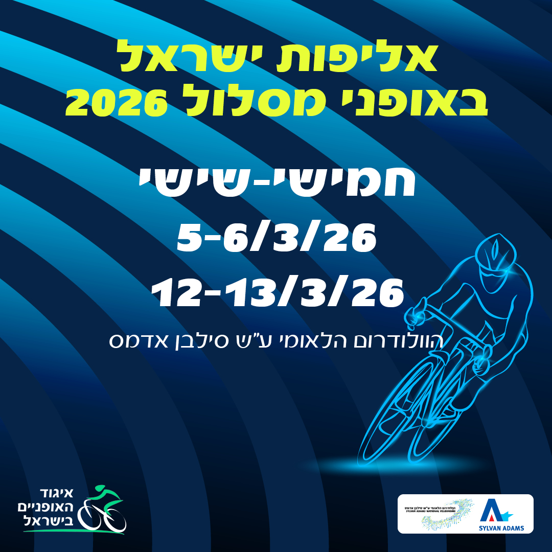 הוסף ליומן 03/13/2026 12:00 AM 03/13/2026 01:00 AM Asia/Jerusalem אליפות מסלול – התחרות נדחה הוולודרום לאומי איגוד האופניים בישראל true MM/DD/YYYY 15