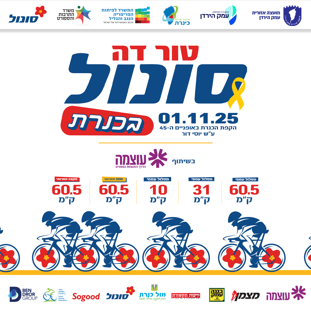 קבוצת בן דרור, המועצה האזורית עמק הירדן ואיגוד האופניים בישראל שמחים להזמין אתכם למרוץ אופני הכביש "סובב כנרת 2025"